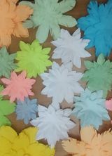 - Снежинки наклеить нужно одну на другую, начиная с самой большой, клеем намазать только середину снежинки слегка прижав.
